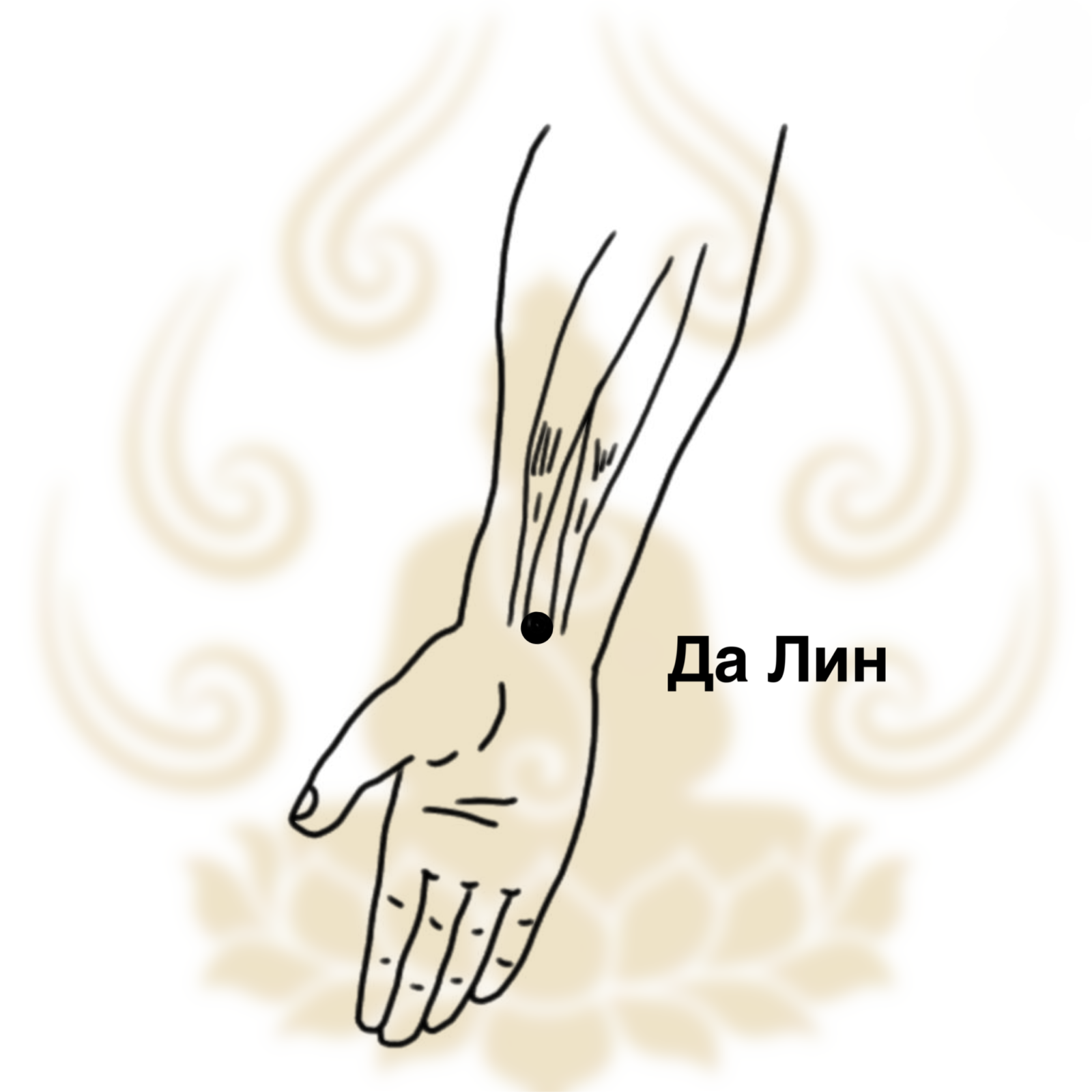 Точка Да Лин принадлежит к меридиану Перикарда, который также называют меридианом Сердечной Сумки. Её название переводится как «Большой Холм» или «Большой Курган», что отражает расположение точки в области, напоминающей возвышение, — на запястье. Да Лин обладает особым статусом: это точка-источник своего меридиана, а также точка-посредник для регуляции энергии сердца и успокоения духа. Её уникальное свойство — мощное седативное действие, направленное на гармонизацию эмоциональной сферы и снятие внутреннего напряжения.