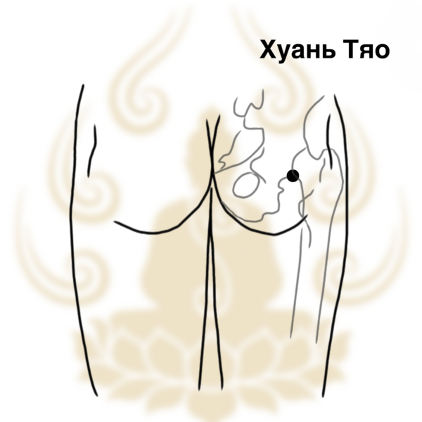 Точка Хуань Тяо VB30 одна из важнейших биологически-активных точек в области таза. Она относится к меридиану Желчного пузыря, хотя также через неё проходит и канал Мочевого пузыря. Именно этим и определяется её название — двупузырная точка — то есть точка пересечения двух меридианов разных “пузырей”. Точка VB30 является одной из ключевых для снятия боли в области таза и бедра.