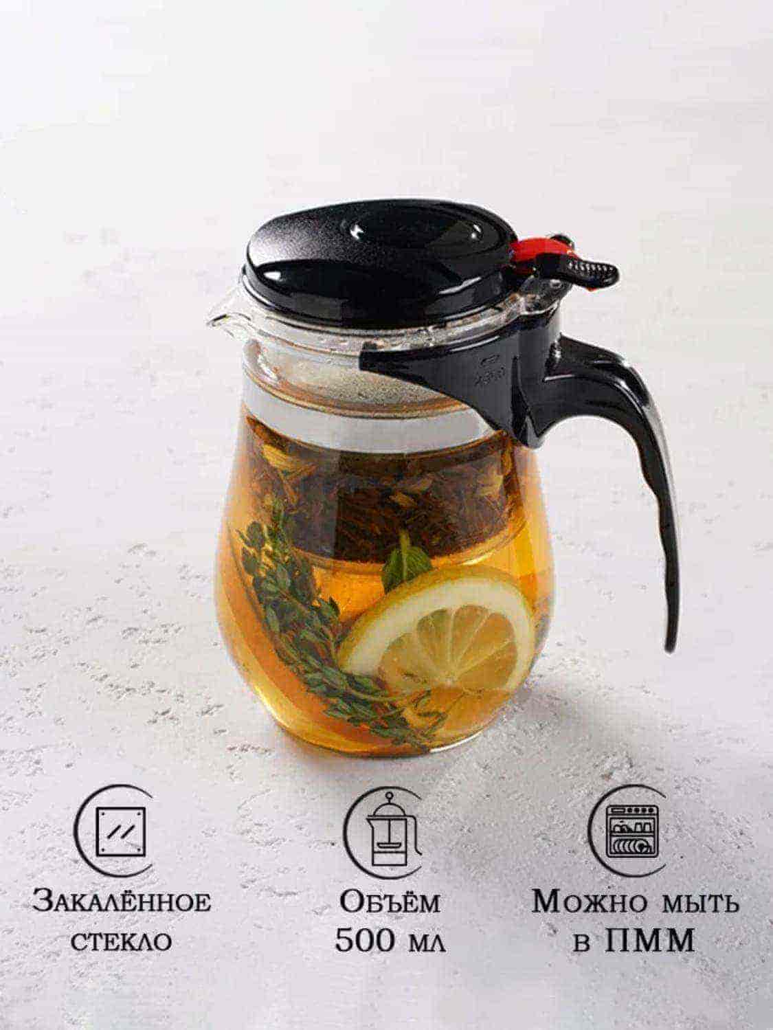 Уход: вытряхивайте заварку сразу после чаепития и промывайте её водой. Так заварочная ёмкость останется прозрачной надолго