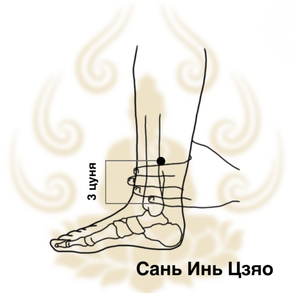В традиционной китайской медицине есть уникальные точки, воздействие на которые способно решить целый комплекс проблем. Одной из таких является точка Сань Инь Цзяо RP6 — относится к меридиану Селезёнки – Поджелудочной железы. Название с китайского дословно переводится как “Пересечение трёх Инь-каналов”. В этой точке действительно пересекаются сразу три меридиана: Печени, Почек и Селезёнки – Поджелудочной железы. Именно этой особенностью и определяется широкий функционал Сань Инь Цзяо и большой список показаний.