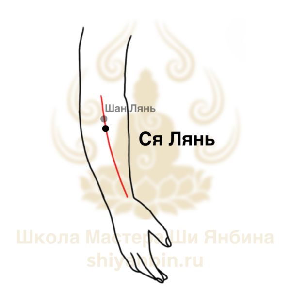 - На этом уровне, на лучевой стороне предплечья (со стороны большого пальца), в мышечном углублении, и находится точка Ся Лянь.