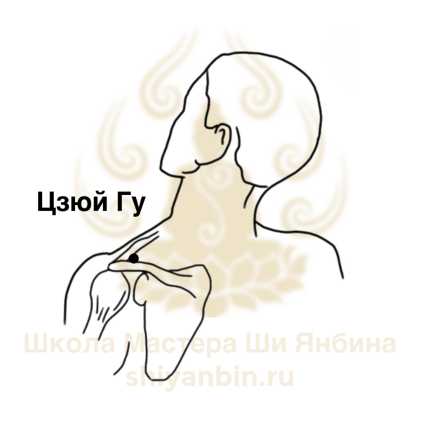Точка Цзюй Гу GI16 относится к меридиану Толстой кишки. “Цзюй Гу” в переводе с китайского означает “огромная кость” — так в древности называли ключицу, кзади от которой расположена эта точка. Цзюй Гу обладает особым статусом — это точка пересечения ручного ян-мин канала толстого кишечника и чудесного меридиана Ян-цяо-май, который отвечает за бодрость, активность и двигательную координацию. Благодаря этому она способна одновременно воздействовать на энергетику основного канала и вспомогательного, что расширяет спектр её терапевтического применения. Расположение точки в области плечевого сустава делает GI16 особенно ценной для лечения локальных нарушений опорно-двигательного аппарата.